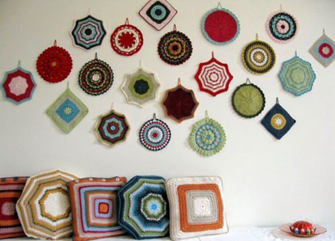 Цвета и оттенки для поделок подобрать так, чтобы они сочетались с другими деталями интерьера. Крючок для вязания должен соответствовать толщине пряжи.