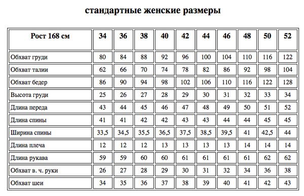 Зачастую в женских фигурах длина плеча «не дотягивает» до заявленных официальных данных от брендов-производителей одежды. Речь идет о несоответствии длины плеча тому размеру одежды, который вы носите. Например, для размера женской одежды 50 (L-XL) стандартная длина плеча составляет не менее 14 см. Вот взгляните на таблицу мерок для журнала Burda (почему именно эти мерки? в поиске в интернете эта табличка вылетела первой, поэтому приведу ее как «основу» для примера).