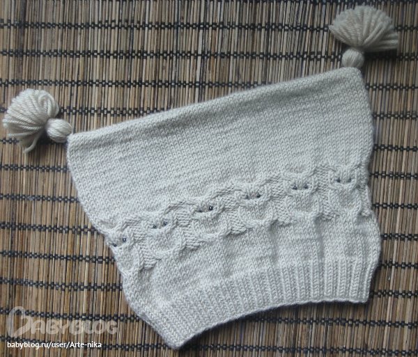 Женская шапка Сова спицами By Ruthie Nussbaum