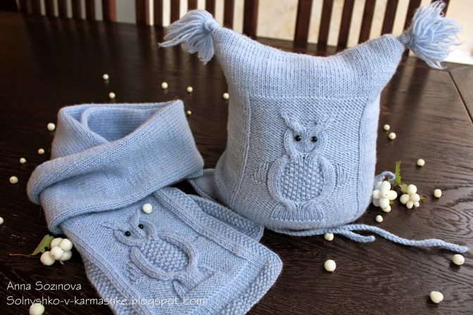 Узор сова можно использовать при вязании детских и взрослых аксессуаров, например шапок или шарфов, снудов и варежек.