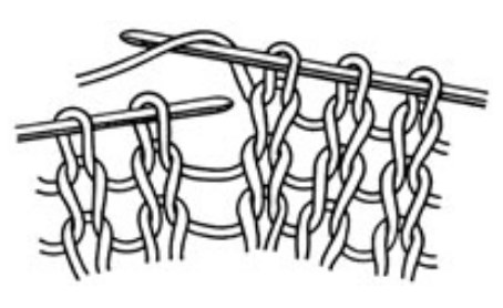 Петля-убавка. Благодаря таким петлям удается делать ряды короче, убавляя количество петель.