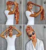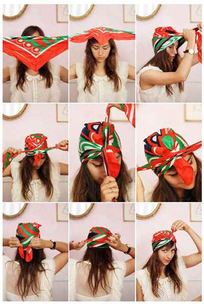 Так как легче всего сделать чалму из шарфа, нужно взять длинный шарф, квадратный для такого процесса не подойдет. Шарф надевается с затылка головы, оборачивает всю голову и закрывает половину ушей. Далее нужно взяться за свободные части шарфа и сжать их. Два конца шарфа нужно завязать на лбу или просто перекрестить их между собой, после чего еще несколько раз обернуть концы шарфа вокруг головы, а оставшиеся маленькие концы нужно спрятать в слоях шарфа.