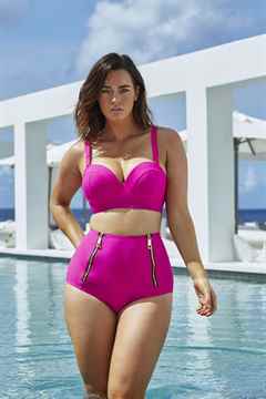 В данном случае стоит учитывать, какие варианты стройнят, а какие полнят. Девушки умеренной полноты могут себе позволить модель раздельного купальника в стиле ретро с высокими трусиками. Они хорошо подтягивают живот и делают акцент на талии, что достаточно выгодно смотрится в данной ситуации. Лиф у данной модели очень удобен и хорошо держит грудь, не давая ей выскользнуть.
