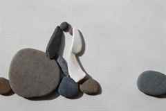 Составить картину можно как игру папы и ребенка. Для этого подбираются камни для силуэтов взрослого человека и ребенка, 2 камешка как имитация воздушного змея и камешки, на которых располагаются папа и ребенок. Нитка от воздушного змея рисуется карандашом или ручкой. По желанию рядом располагается фигура мамы.