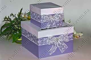 Сундучок для сбора денег представляет собой коробочку или ларец. Декорируется такой предмет тканью, красивой упаковочной бумагой, лентами, цветами, стразами, бусинами, тут уже у кого на что хватит фантазии. Главное, чтобы украшение полностью было в стиле свадьбы и в той же самой цветовой гамме.