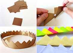| Корона с зубцами | Цветная бумага, клей, ножницы, шаблон | Распечатать/нарисовать шаблон, вырезать, склеить. |