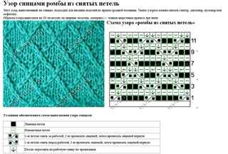 Часто используются в вязании ромбы спицами, со схемами которых, в принципе, не так сложно разобраться. Такой узор больше подходит для свитера или кофты. Ромбы могут иметь тонкие петли или наоборот, очень толстые. Они могут использоваться на вещах и аксессуарах, например, на вязаных сумках, шапках и шарфах. Также могут использоваться на перчатках.