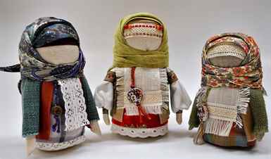 Куклы-обереги из лоскутков делают из отрезков ткани, свернутых в «скалку» и тщательно обтянутых льняной белой тряпицей. Можно также делать традиционные народные куклы и игрушки из лыка, которое мы заменяем более приятной цветной рафией.