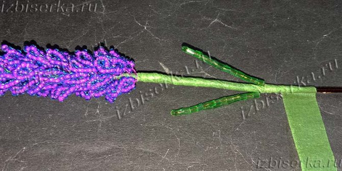 До конца обматываем тейп-лентой и всё, один цветочек сплетён. Для букета лаванды таких цветочков плетём несколько штук.