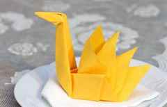 Одноразовый красивый лебедь может быть сделан из салфеток, например, если нужно украсить стол на банкет или праздник, то на каждую тарелку можно поставить салфеточного лебедя. Это и украшение, и средство гигиены, поэтому такой вариант будет очень интересным для гостей.