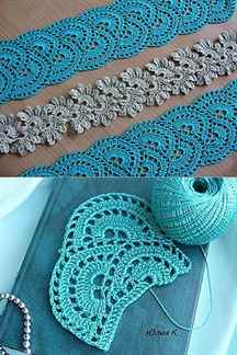 Для получения кружевной ленты лучше брать нитки потоньше. Вяжутся такие ажуры достаточно просто, что очень радует начинающих мастериц. Применение таким изделиям очень обширное, ими можно декорировать не только вещи, но и предметы интерьера, например, отделать скатерть либо плед и наволочку на подушку.