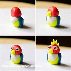 Чтобы добавить яркости, сделаем перья. Скатайте небольшие кусочки красного и желтого пластилина, придайте им форму капель и прикрепите к крыльям, создавая эффект разноцветных перьев.