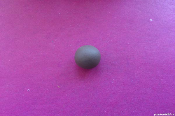 - Сначала отрежьте от бруска кусок материала, разомните его пальцами. Сделайте шар. Для экономии положите внутрь шара орешек или каштан.