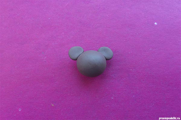 7. Превратите бугорок в носик, прикрепите глазки и круглые ушки.