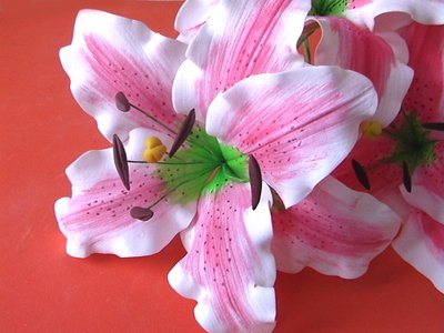 Ну вот такая веточка лилии у меня получилась в результате этого мастер-класса. Состоит она из трех бутонов лилии и двух цветочков.