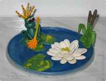 Лепка из пластилина – занятие захватывающее, и после того, как наша лягушка готова, хочется продолжить этот праздник. Давайте сделаем для нашей веселой зеленой красавицы место ее обитания. Возьмем белый лист бумаги или картон и сделаем пруд, где будет она жить.