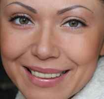 Чтобы подчеркнуть ваши естественные черты, нанесите контур вдоль линии подбородка и по бокам лба. Этот прием помогает визуально укоротить лицо. Румяна следует наносить на яблочки щек и растушевывать по направлению к центру лица.