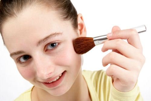 В первую очередь, необходимо кожу очистить и после этого нанести тональный крем. Количество средства должно быть с небольшую горошину и распределять его следует тщательно по всему лицу. Лучше для этого воспользоваться пальцами. Кисти для нанесения макияжа предназначены для более взрослого макияжа. При необходимости нанесения маскирующего средства надо нанести его перед тональным кремом. После этого можно слегка припудрить лицо, чтобы убрать жирный блеск.