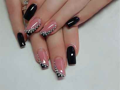 Раньше черный маникюр делали только любительницы готики. Сегодня он является символом наличия чувства вкуса и стиля. Практически каждый производитель имеет в своей линейке лак черного цвета. Если судить по фото, то многие звезды выбирают этот цвет для своего маникюра. Так как это достаточно коварный цвет, он должен гармонировать с выбранным образом. Однотонный черный маникюр смотрится очень красиво, но чтобы внести разнообразие и добавить изюминку, используются стразы. Например, можно ими выложить линию свободного края на некоторых ногтях. Или сделать простой рисунок.