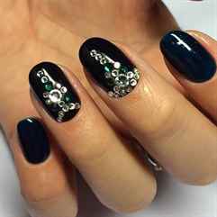 | Крупные стразы | На одном-двух ногтях | Акцентный маникюр |