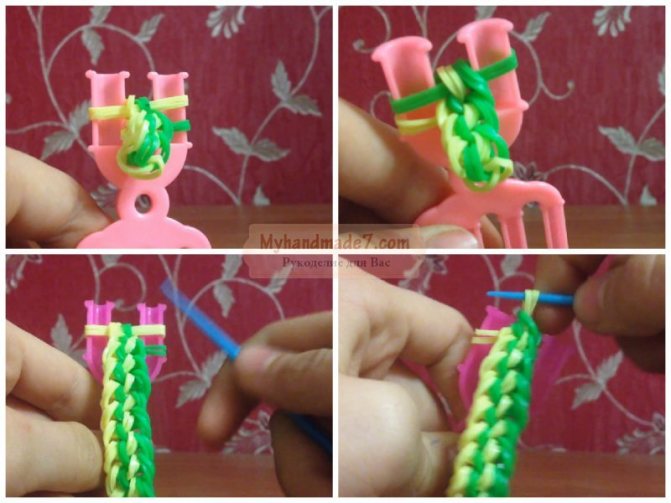 - Сделайте петлю и образовавшийся кончик аккуратно протяните через 2 последние элемента. В результате у вас должна образоваться такая же петелька, как показано на фото.