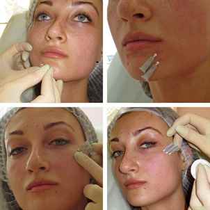 Игла с нитью вводится на 3-5 мм. Выполняется натяжение нитей — благодаря насечкам они связываются вместе, формируя прочный каркас. После лифтинга кожа обрабатывается антисептиком, на нее наносится щадящий увлажняющий крем. Места от проколов заживают на протяжении примерно 2-7 дней, следов от них не остается.