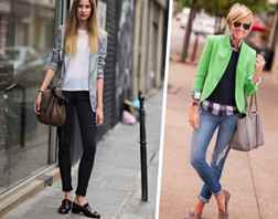 Лоферы стоит сочетать с укороченными джинсами, которые могут быть как обтягивающими, так и прямого кроя. Для верха образа можно предпочесть футболку, майку, рубашку, свитер, гольф, кардиган, пиджак, куртку или тренч.