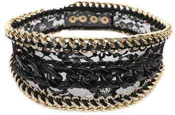 Не менее популярны и пояса с множеством металлических деталей или сделанные полностью из металлической цепочки. Они могут быть большими и маленькими, в один или несколько рядов, с дополнительными декоративными элементами или без них. Сами звенья цепи могут быть обычными или в виде сердечек или иной причудливой формы.