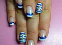 | Французский маникюр с морским акцентом | Классический френч с синей, голубой или бирюзовой полоской вместо белого. | [Ссылка на фото френча с морским акцентом] |