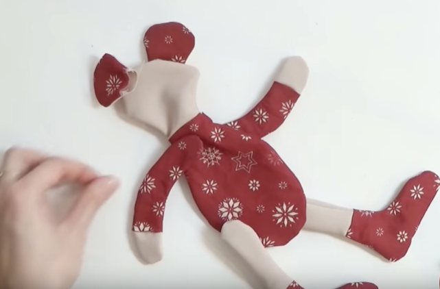- Теперь все детали выворачиваем, каждую набиваем любым наполнителем и отверстия зашиваем потайным стежком.