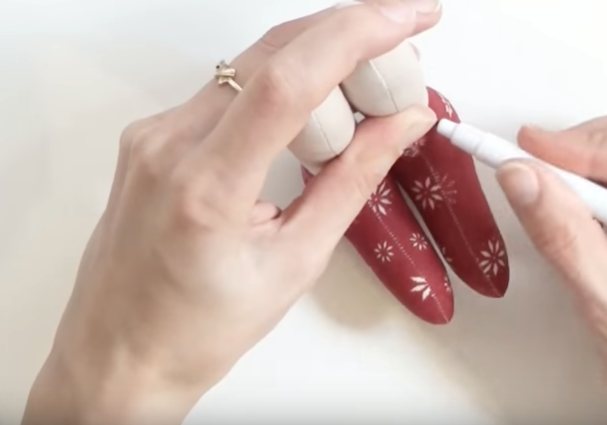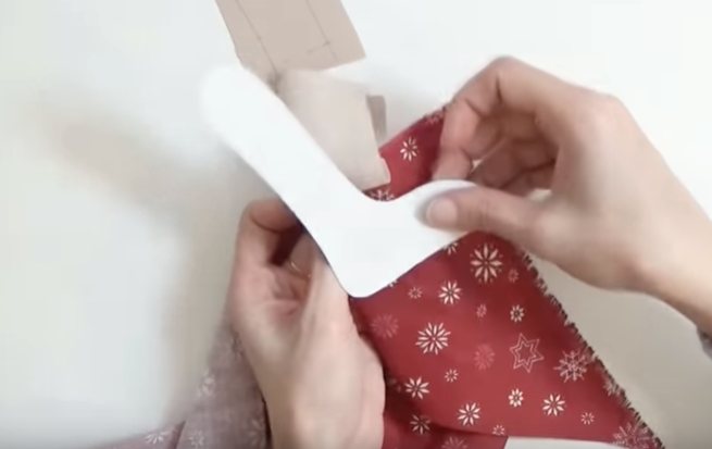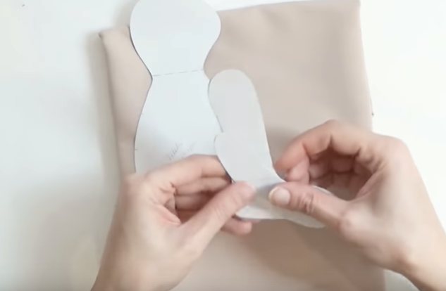 Перевести шаблон на сложенную вдвойне ткань, оставить небольшой припуск на шов. Сшить между собой и вывернуть на лицевую сторону, затем зашив потайным швом.