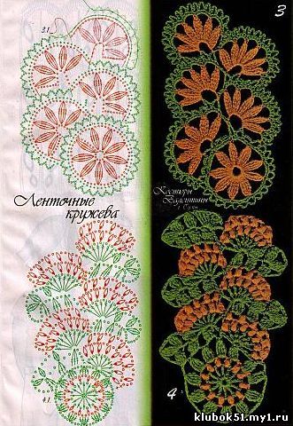 Ниже расположены разнообразные схемы ленточного кружева с фото-образцов.