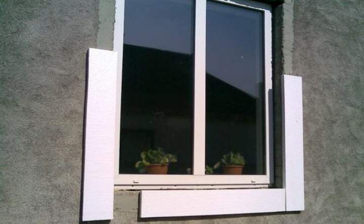 Наружная часть откоса, выполненная из пенопласта, краски и штукатурки, защитит жилище от потери тепла. Элемент расположен под небольшим углом, на окне не будет скапливаться влага.