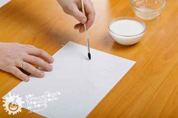 - Написать зашифрованное сообщение на листе бумаги смоченной в растворе кисточкой.