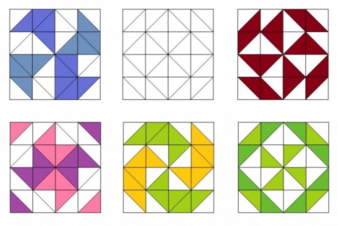 Самыми распространенными считаются лоскутки представленные блоками из квадратов или других фигур.