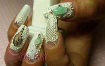 — Акриловые фигурки. Подобные узоры требуют особой фантазии от мастера маникюра. Такие фигурки можно считать почти произведениями искусства. Подобный маникюр делают только в самых торжественных случаях. Чаще всего, делают цветы, животных, птиц, крепится все это на клеевую основу.