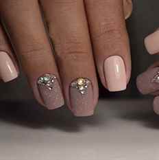 — Стразы – пожалуй, самое популярное украшение ногтей. Их легко закрепить, подобрать под них необычный рисунок, и легко удалять с ногтя. Стразы закрепляются непосредственно на финишное покрытие, которое еще не подвергалось ультрафиолетовому излучению. Затем после сушки со стразами финишное покрытие аккуратно наносят еще раз в промежутки между страз, чтобы более надежно закрепить их, и еще раз помещают ногти в УФ-лампу.