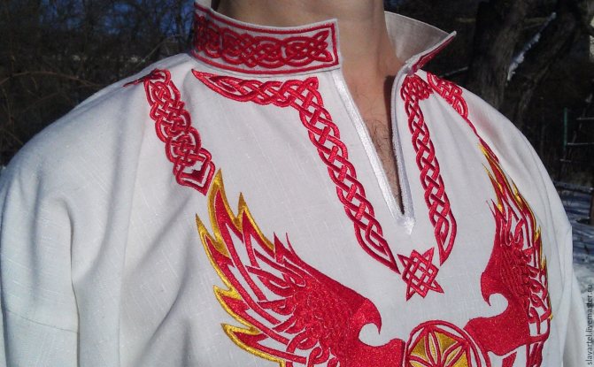 Интересно отметить, что расшивали именно ту часть одежды, через которую, опять же по мнению наших предков, злые силы добирались до тела или души. Охранным узором вышивали орнамент на вороте рубахе или манжеты, подол, вырез горловины. Ткань выбирали непроницаемой, а цвет для вышивки – красный. Считалось, он способен усилить энергию.