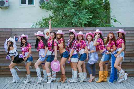 Если погода позволяет, можно провести девичник на природе. Стоит забронировать коттедж на выходные или отправиться в дом отдыха. Нужно продумать меню, закупить продукты и напитки. А также позаботиться о развлекательной программе. Кстати, если возникает вопрос: как одеться на девичник, если он проводится за городом, то актуальной темой станет ковбойский стиль. Джинсы или шорты из денима, шляпы, рубашки в клетку можно найти без особых затруднений.