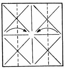 - Квадратный лист хорошо прогните во всех направлениях: по горизонтали, вертикали и диагоналям.