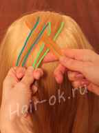 Те же действия выполняем и с левой боковой прядью, т.е. откладываем маленькую часть и прикалываем сбоку.
