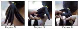 Добавочную прядь теперь присоединяем к пряди слева и подныриваем соединённым клочком под центральную.