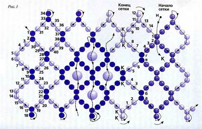 Чтобы выполнить плетение сеткой, которая является основой в таком плетении, можно воспользоваться несколькими схемами: