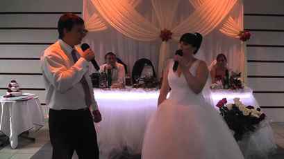 Поздравления невесты не обязательно исполнять перед гостями, можно остаться с женихом наедине и спеть ему свою песню. Такой вариант подойдет для стеснительных девушек и для тех, кто не умеет петь. Жениху будет все равно, есть ли талант у невесты, ведь эта песня написана специально для него, потому он не может остаться равнодушным.