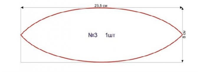 Чертим третий шаблон размерами 23,5х8 см. Отмеряем средины на каждой стороне и соединяем все стороны полукругом.