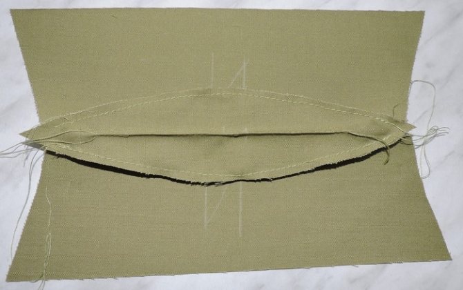Выворачиваем получившуюся (центральную) часть пилотки и гладим. Берем детали А и сшиваем по парно лицом к лицу по округлой их части.