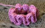 Ряд – л. п.. 2 р.: и. п.. 3 р.: 1 л. п., *нить перед раб., сн. п., нить за раб., 1 л. п., повт. от *. Повторяем 2-3 р. х 2. После – 1 р. и. п..