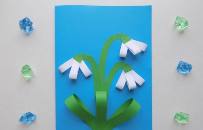 На титульной стороне приклеить цветы и листочки, вырезанные из цветной бумаги. На внутренней стороне можно написать поздравление.