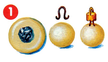 Для приготовления обычного шарика нам понадобится шарик фольги, который мы в дальнейшем и облепим заранее приготовленным тестом. Прекрасным вариантом крепления будет старое крепление от разбитой елочной игрушки.