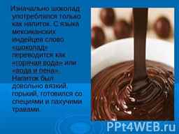 С течением времени шоколад стал популярным и среди ацтеков, которые также ценили его высоко. Ацтеки использовали какао-бобы в качестве валюты и верили, что они обладают магическими свойствами. Император Монтесума II, согласно легендам, употреблял шоколадный напиток в больших количествах, полагая, что он придаёт силу и энергию.